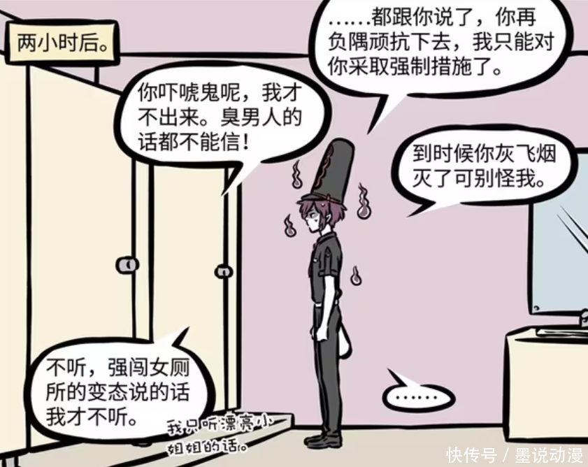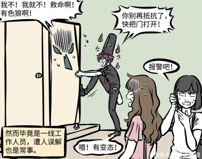 因为是在女茅厕进行,是以黑无常范不归被误以为是变态,一直在拉扯着茅厕门。范不归只思快点完成职责,没思到会被误解这样深。此时有个女孩照旧报警,看来范不归的情况不太乐不雅。