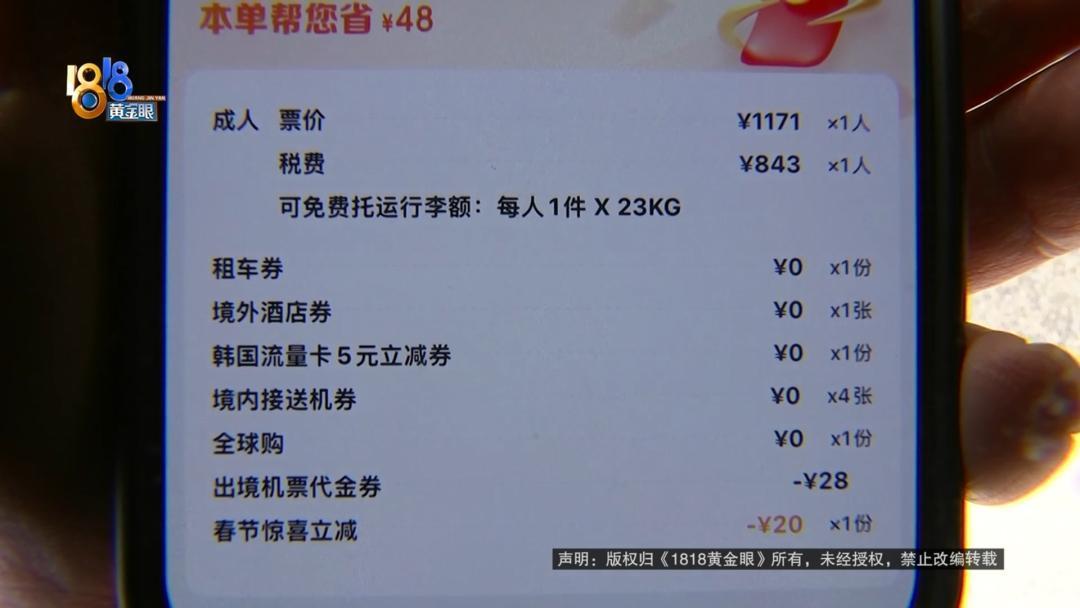 周女士说她们一排三东谈主往返价钱齐是一千九百多元,若是按照1470元的价钱算,三个东谈主一共能省下一千四百多元,也等于一个东谈主往返的机票钱。