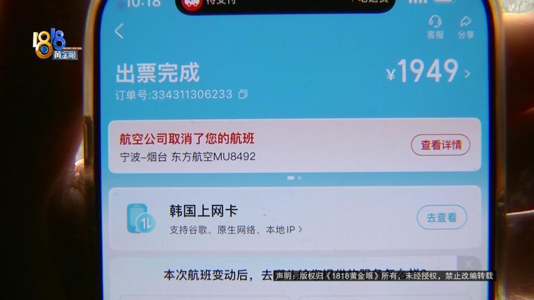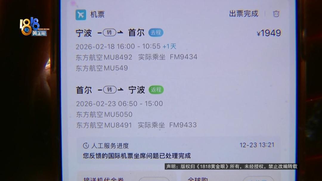 周女士提供了购票信息,宁波往返首尔的机票一共1949元,下单时期是2025年12月18号上昼9点。