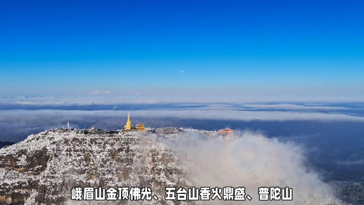 ·佛谈圣地不成少,峨眉山金顶佛光、五台山香火本旨、普陀山海天佛国、九华山道喜有用。
