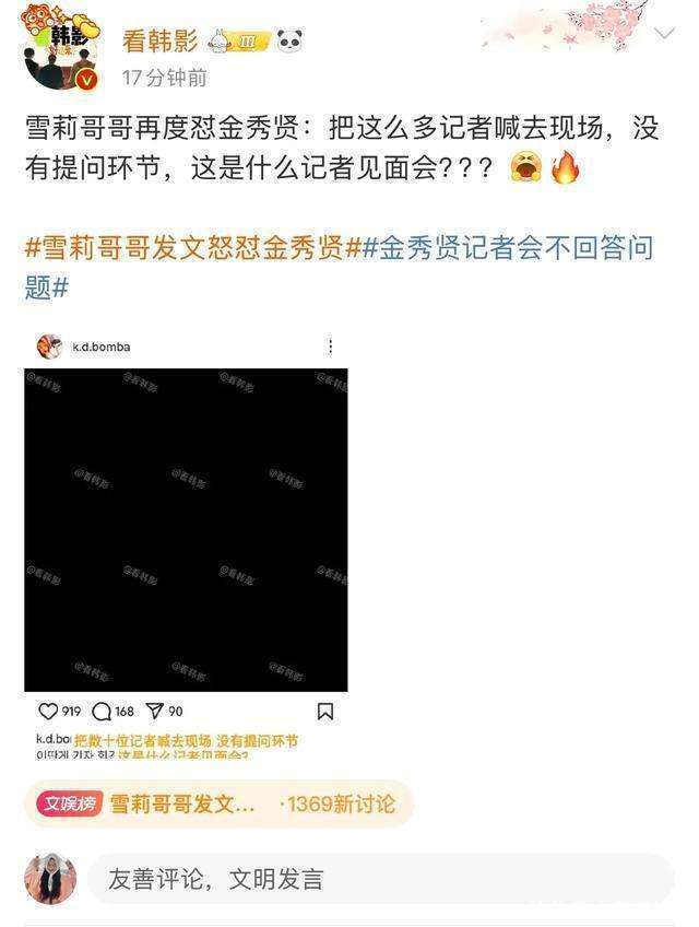 横竖商讨所发文称会好好眷注这场记者会,这就标明他们莫得被邀请到场。这就很奇怪了,既然是一个备受眷注的爆料事件,横竖商讨所动作爆料的一方却莫得被邀请,这中间是不是有什么猫腻呢?而况金秀贤的哥哥还在ins上发声说:“把数十位记者喊去现场,莫得发问规范,这是什么记者碰头会?”若是真的只是只消数十位记者的话,那这些记者被收买的可能性如实很大。这就像是一个巨大的贪念笼罩在通盘记者会的上空,让东说念主不禁对这场记者会的公平性产生了浓烈的怀疑。