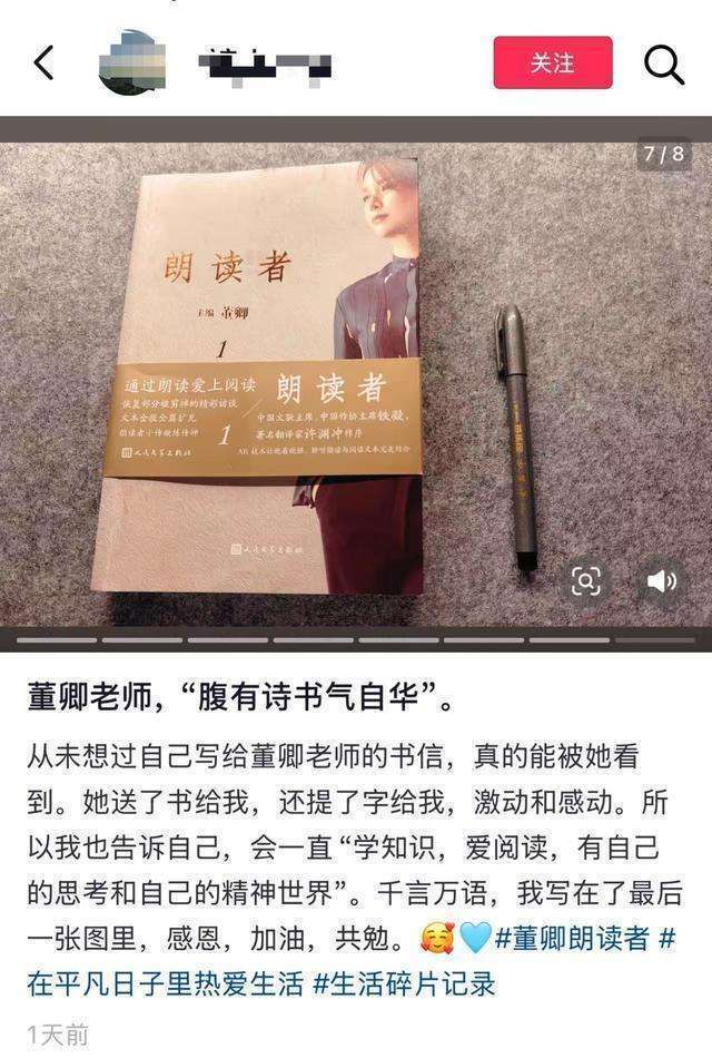 4月18日,一则讯息如同进入舒适湖面的石子,在粉丝群中激起层层动荡。有一位博主高亢地晒出了偶遇董卿的相片,况兼报告了4月12日在上海某大厅那一场如同虚幻般的相见。那时,这位侥幸的博主就像一个怀揣着满心期待的孩子,一见到偶像董卿,就迫不足待地拿出版和笔,顶礼跪拜地提真金不怕火签名。从博主晒出的相片来看,董卿身着一袭格纹西装,那特有的格纹仿佛是岁月为她悉心编织的特有图案,再搭配上蓝色衬衫,这种看似混搭的着装作风,却在她身上奥妙地和会出一种别样的前卫感。她背着棕色的包,也许是出门作事的起因,她的妆容细密得如同被良工巧匠悉心雕琢的艺术品。只是,那久未在舞台上展现后光的她,少了往昔那种飒爽英姿的神韵,仿佛是一把被尘封在剑鞘中的宝剑,暂时失去了往昔的矛头。