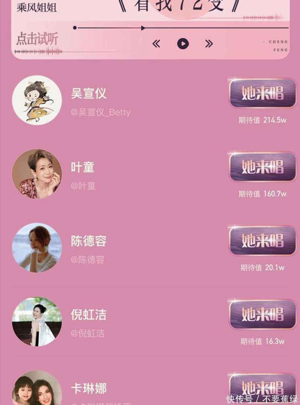 对了,卡琳娜这姐姐利弊了,一东谈主横跨两组,既要《看我72变》,又要《庐州月》。按照票数来看,她应该是更偏向《看我72变》那组。