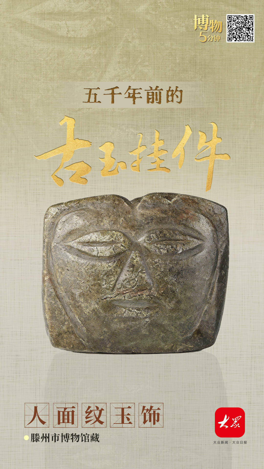 新石器期间大汶口文化东说念主面纹玉饰 滕州市博物馆藏
