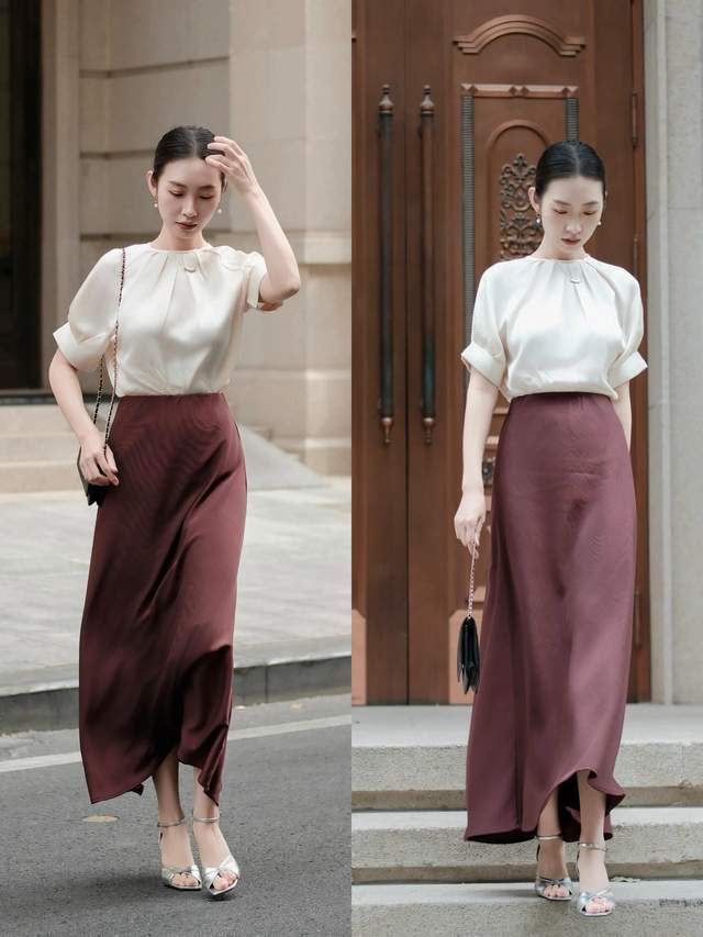环球有莫得发现,那种贵妇的气质范,要的即是穿一条比拟有质感的裙子和上衣才行。