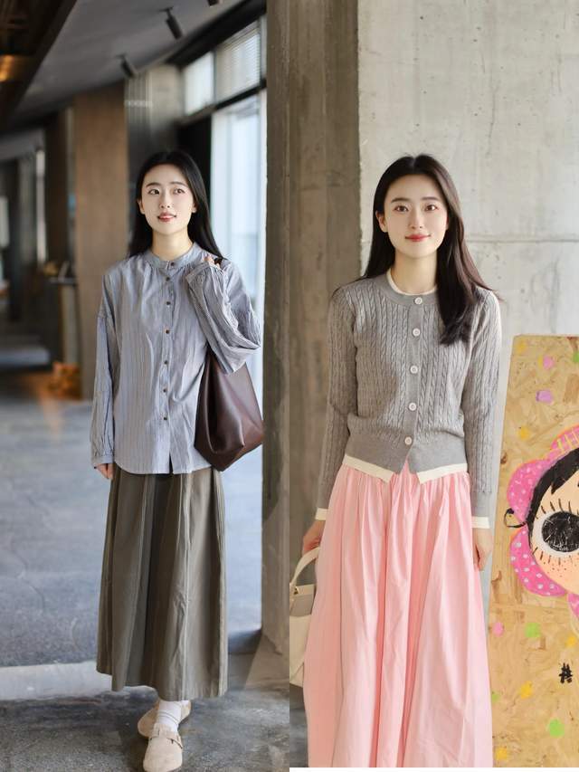 个子工整长相甜好意思,咱们不错用一件灰色的真挚开衫,叠穿浅黄色的打底衫和一条粉色的伞状半身裙。这么的穿戴颜色组合更显俏皮洋气,同期修饰肤色,显白显嫩。