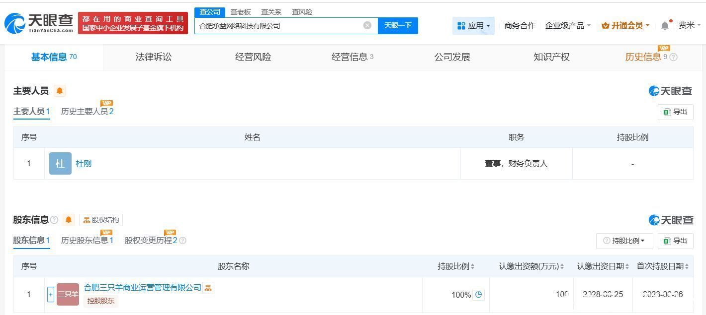 该公司成立于2023年6月,注册老本100万东谈主民币,指标鸿沟包括信息时刻忖度做事、软件设备、影相扩印做事等。激动信息露出,该公司现由合肥三只羊买卖运营贬责有限公司全资握股。值得一提的是,此前,三只羊旗下的合肥三只羊纯熟科技有限公司、合肥三羊开泰商务信息忖度有限公司、合肥庐羊体育文化传媒有限公司等多家公司发生高管变更。
