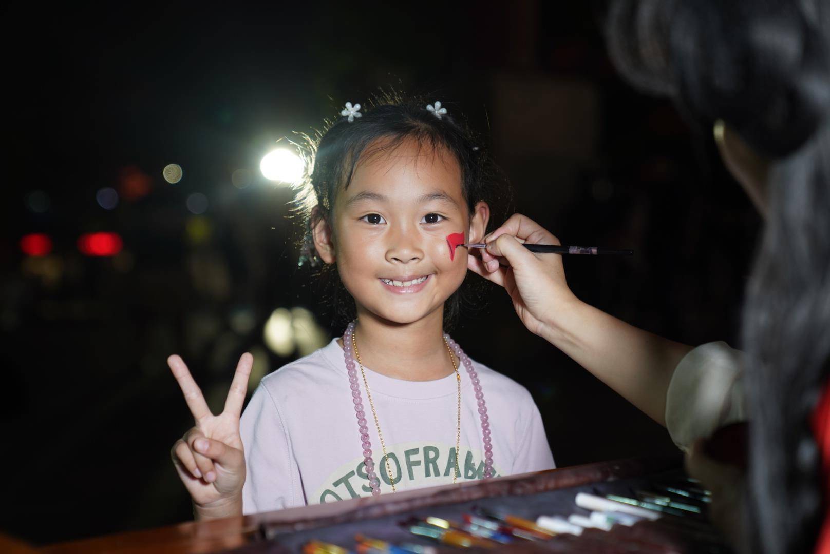 国庆主题点妆手脚区,行家有序列队,期待着使命主说念主员用贤慧的笔触,在他们的面颊上神情出五星红旗、“中国心”等图案。“这个手脚特地有典礼感!”带着孩子前来体验的市民刘女士说,“一笔一画不仅是节日的讳饰,更是一颗爱国的种子,偷偷种在了孩子心里。”